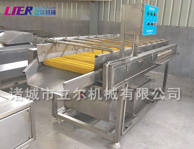 當(dāng)原料放入該機后,毛刷輥旋轉(zhuǎn)刷洗原料并使其不斷翻轉(zhuǎn),同時,排水管不斷地噴淋,把從原料上刷洗下來的污物沖洗掉,直到洗凈為止,順著毛輥的旋轉(zhuǎn)方向出料。